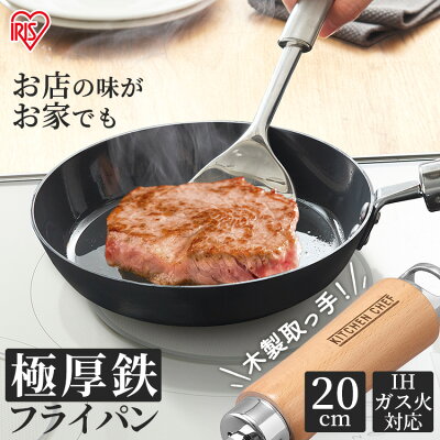 フライパン ih 20cm 鉄 鉄フライパン IH IH対応 ガス ガス火 軽量 軽量フライパン 軽い 送料無料 おしゃれ お手入れ簡単 使いやすい 丈夫 長持ち 木製取っ手 極厚タイプ 極厚鉄フライパン キッチンシェフ KITCHENCHEF SCPT-F20