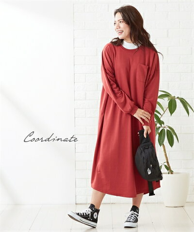 ワンピース マタニティ ママ 産前 産後 授乳服 綿混 スウェット 前ポケット付 ゆる カーキ/モカ/ローズレッド M/L ニッセン nissen