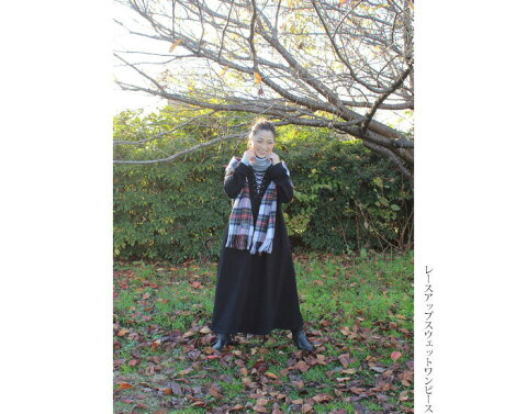 商品詳細 サイズ・容量 サイズ ( 約 ) ■フリーサイズ 着丈 126 cm バスト 114 cm ウエスト 120 cm ヒップ 140 cm 裄丈 86cm 腕周り 36 cm 袖口 32cm 材質 コットン100% 中厚地 裏地なし サイドポケット有 モデル KUMI 身長161cm <商品説明> 大きく開いたVネックのレースアップがポイントのワンピース。
