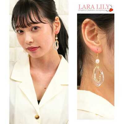 生産地 日本素材 アクリル淡水パール合金製 樹脂ノンホールピアス 樹脂ピアス 大ぶり 揺れる ドロップ 淡水バロックパール オーバル かわいい おしゃれ シンプル レディース 夏 金属アレルギー対応 樹脂イヤリング ネジバネイヤリング フック スタッド komyu 日本製 無料ラッピング ギフト プレゼント アクセサリー 上品 カジュアル ゴールド 楕円 いびつ 結婚式 誕生日 母の日 【LARA LILY デザイナーズアクセサリー】 クリアドロップチャームが夏らしく、淡水バロックパールがおしゃれな、大ぶりサマーアクセサリー。