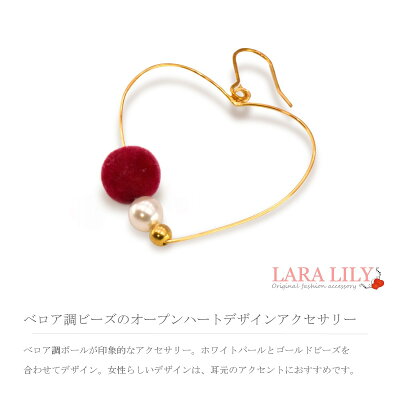 サイズ ベロア調ビーズ:10mmホワイトパール:6mmゴールドビーズ:3.5mm生産地 日本 樹脂ノンホールピアス 樹脂ピアス ハート フープ フック 揺れる ベロア調ビーズ パール シンプル おしゃれ かわいい ピアス イヤリング レディース 秋 冬 金属アレルギー 安心 樹脂イヤリング ネジバネイヤリング Komyu 日本製 無料ラッピング ギフト プレゼント アクセサリー レッド グリーン ホワイト グレー ブラウン ブラック 大人 上品 カジュアル 結婚式 誕生日 デート 【LARA LILY デザイナーズ作品】 ベロア調ボールが印象的なハートフープアクセサリー。