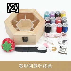 裁縫セット おしゃれ ソーイング ボックス かわいい 木製 六角形 持ち運び 携帯 プラスチック コンパクト 糸 カラフル 針 糸切はさみ 糸通し 裁縫 道具 手芸 用品 収納 整理 趣味