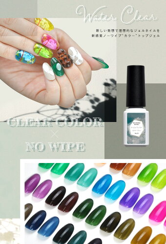 新感覚 カラートップジェル 「WaterClear」 高発色 クリアカラー ノーワイプトップ カラー ポリッシュ ネイルジェル アートジェル ジェルネイル用品 爪 カラージェルネイル ジェルネイルアート ネイル工房 にわちゃん