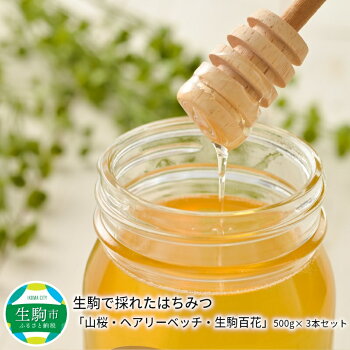 【ふるさと納税】はちみつ 3本 セット 各500g 国産 生はちみつ 非加熱 非調合 純粋はちみつ 山桜 ヘアリーベッチ 生駒百花 食べ比べ ティータイム 朝食 上品 お取り寄せ 食品 食べ物 奈良県 生駒市 送料無料