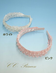 『パールとレースのカチューシャ(HD-015)』 ヘアアクセサリー、 ヘッドドレス、 カチューシャ、 キッズアクセサリー、 髪飾り、 発表会、 結婚式、 リングガール、 ピンク、 ホワイト【CC-Princess】