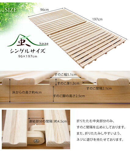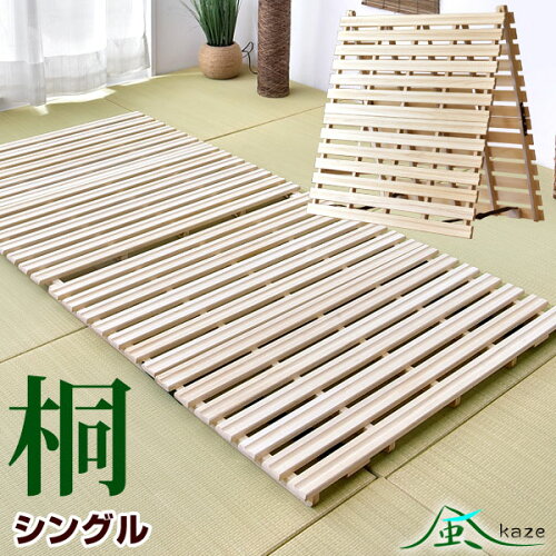 二つ折りでコンパクト!布団干しも楽々!湿気対策に すのこマット シングル 桐 すのこベッド 木製 すのこ 折りたたみ 折り畳み シングルベッド ベット 湿気 カビ 除湿