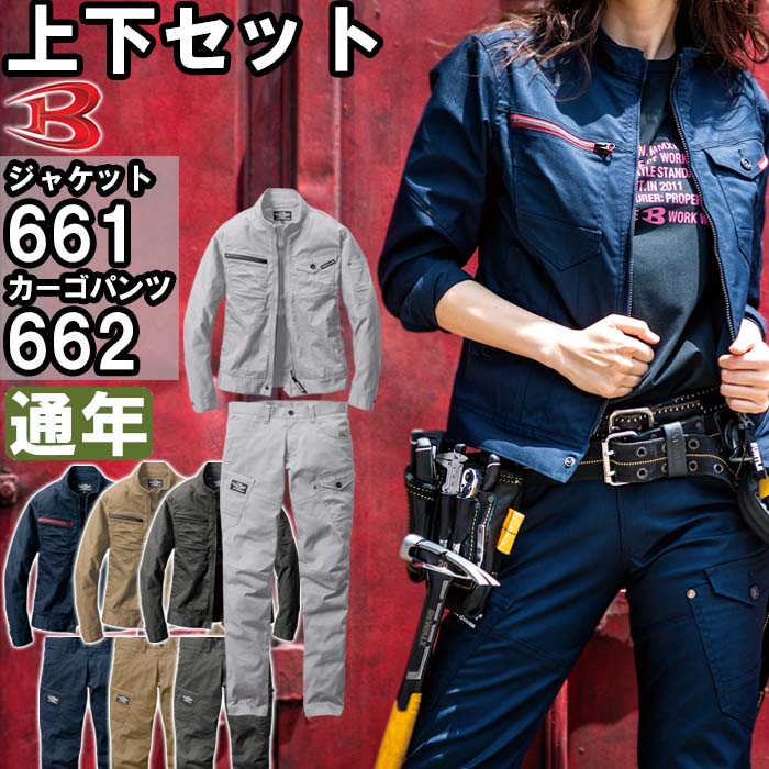 ・身体の動きとシンクロするストレッチ素材(伸長率16%) ・程よくスリムフィットなテーパードシルエット ・お手頃な価格とデザインのベストバランスモデル ・男女ユニセックスシリーズ スペック メーカー バートル(BURTLE) 品番/シリーズ 661 662/661シリーズ シーズン 通年(オールシーズン) 商品名 ジャケット(ユニセックス) & カーゴパンツ(ユニセックス)セット(上下同色) 素材 T/Cストレッチツイル(伸長率16%)、製品洗い加工 混率 ポリエステル64%・綿33%・ポリウレタン3% 仕様 製品洗い加工、ストレッチ、防縮、ユニセックス、オールシーズン ※ジャケット:Sサイズはユニセックス対応シルエットです。