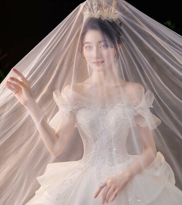 花嫁 ウェディングドレス キラキラ ライトシャンパン 大きいサイズ ロングドレス トレーンドレス 着痩せ ぽっちゃり 花嫁 結婚式 二次会 ドレス 締め上げタイプ レース 撮影用