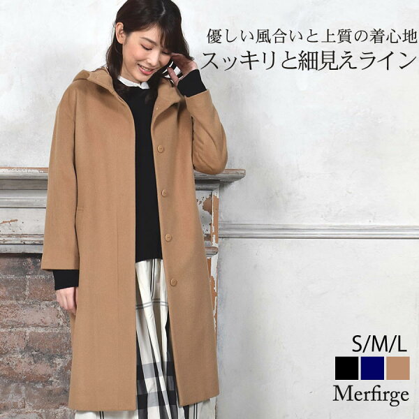 素材 表地:ウール90%カシミヤ10% 裏地:ポリエステル100% サイズ 【S】着丈約102cm バスト約104cm 肩幅約53cm 袖丈約48.5cm 【M】着丈約103cm バスト約108cm 肩幅約54cm 袖丈約49.5cm 【L】着丈約104cm バスト約112cm 肩幅約55cm 袖丈約50.5cm 【LL】着丈約105cm バスト約116cm 肩幅約56cm 袖丈約51.5cm 重量 約930g 留め具 ボタン×7 ポケット ポケット×2 原産国 中国製 商品説明 カシミヤ10%ウール90%混紡素材の柔らかで軽やかな手触りのフード付ロングコート。