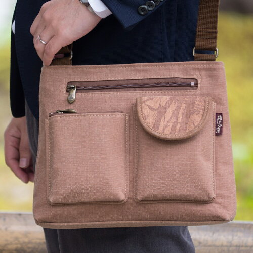ショルダーバッグ メンズ レディース 斜めがけ バッグ 小さめ 日本製 祖母 祖父 米寿 お祝い 敬老の日 誕生日 プレゼント おじいちゃん おばあちゃん 父 母 京都 旅行 サブバッグ 柿渋染め 軽量 Wアウトポケットショルダー 無地 和柄 ブラウン 茶[くれあーれきき]KS-161T
